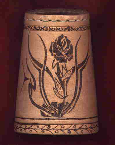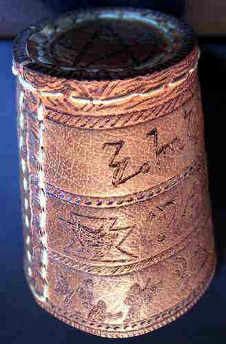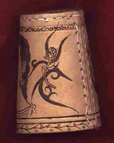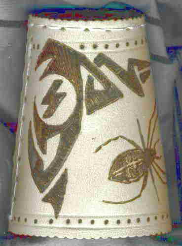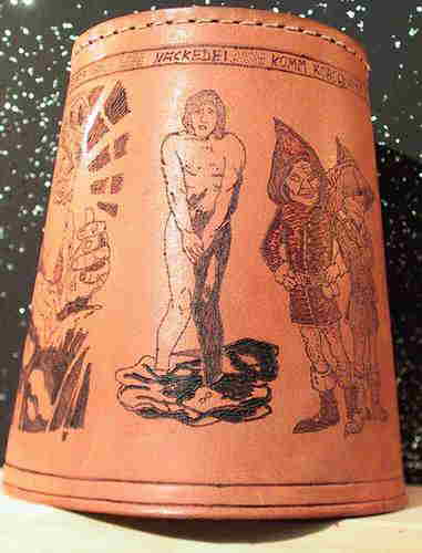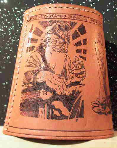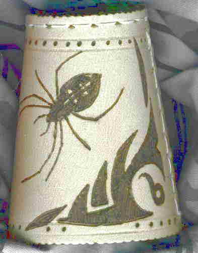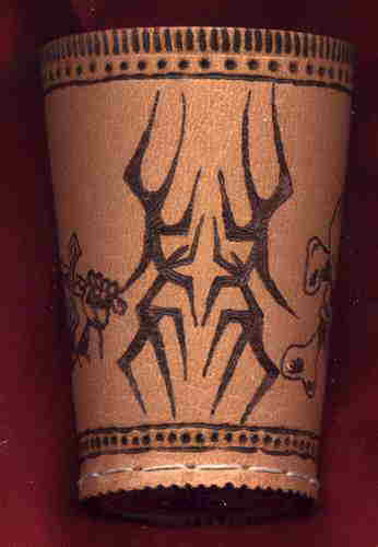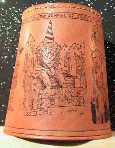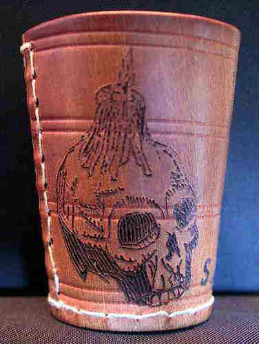 ACHTÙNG: Ich besorge die Becher gerne selbst, denn es gibt große qualitative Unterschiede bei den Bechern! Viele sogenannte ECHTLEDER sind aus Lederspänen aufgeschäumt, oder haben eine kaum sichtbare Schutzlasur. Beides ist zum Brennen total ungeeignet! Für angelieferte Wunschbecher übernehme ich keine Gewährleistung!!